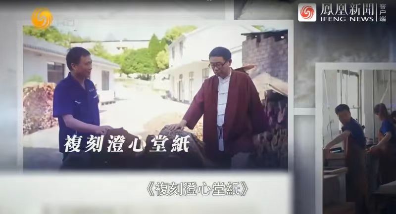 在黃山市凝霜文化發(fā)展有限公司,欄目攝制組全程記錄徽州楮皮紙第二代傳承人、非遺傳承人朱建新的徽州楮皮紙制作技藝?!段幕笥^園》總策劃、主持人王魯湘詳細(xì)了解徽州楮皮紙的優(yōu)勢(shì),制作的傳承和發(fā)展,并與徽州楮皮紙第二代傳承人朱建新面對(duì)面暢聊古法造紙和新技的結(jié)合。